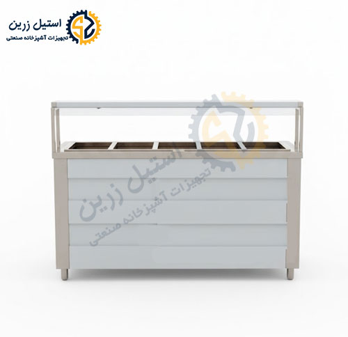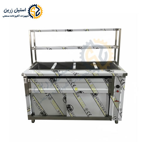 كانتر گرم داراي چند لگن بن ماري مي باشد كه مواد غذايي داخل آن نگهداري مي شود.